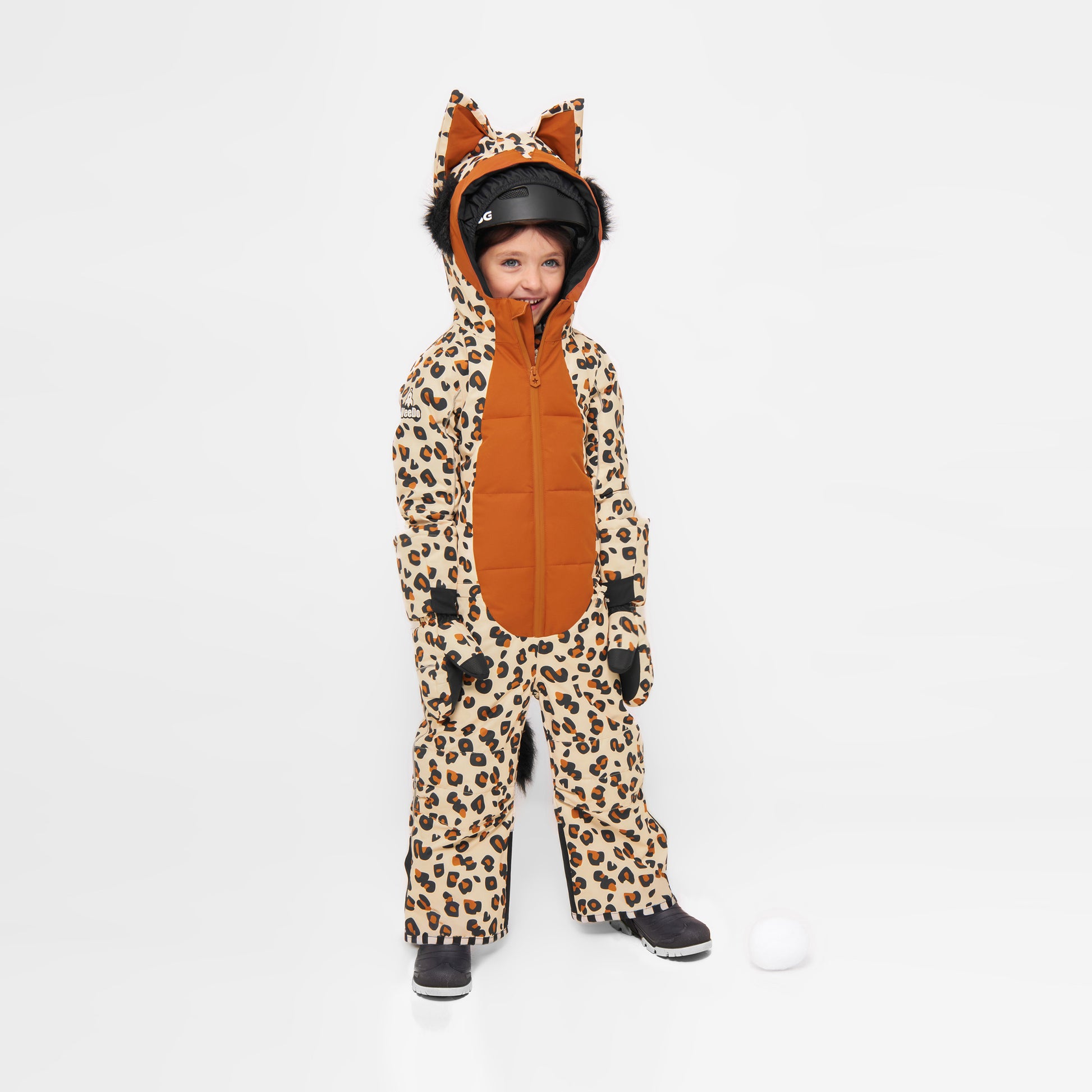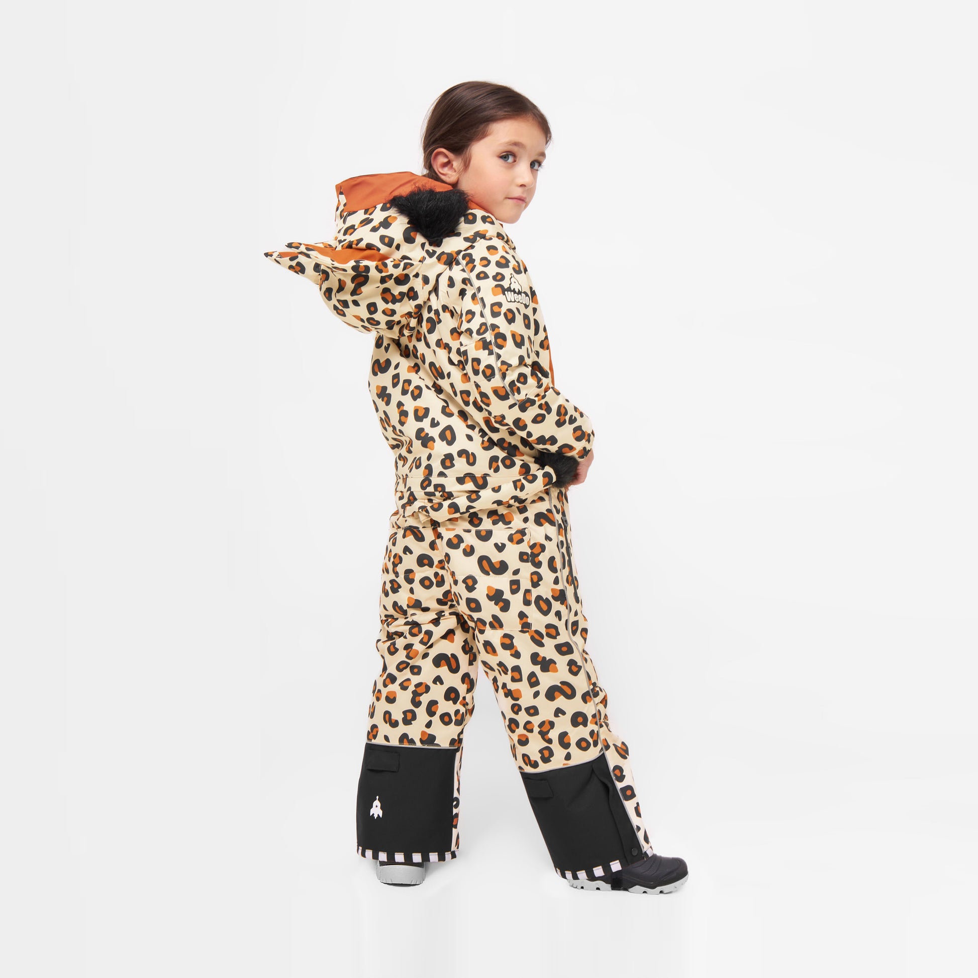 Wild in look, strong in protection - the CHEETAHDO children's snowsuit! In milky white with black and brown patches, it's made for little winter hunters on quiet paws with a thirst for adventure. Elegant like a snow leopard, wild like a real outdoor fan - this suit stands out without being loud. It's for all kids who go their own way - sleek, strong and with plenty of self-confidence.